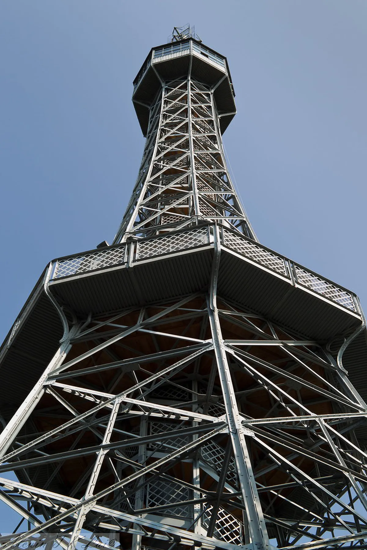 After you exit the top station, follow the paved paths. The Petrin Lookout Tower is just a short walk away. You will see the tower peeking through the trees almost immediately. The walk is flat and very easy for children or seniors.